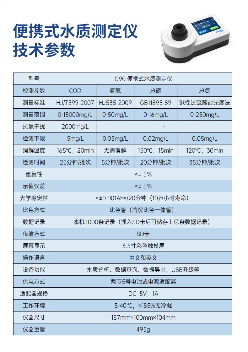 可在野外使用的便攜式水質設備,測定項目的原理符合環保行業認可方法。